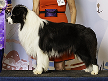 Lucky has a lovely temperament, good bone, head and body structure. He loves to play games and can be a little mischievious. Lucky is black and white and stands 20.25 inches, weighing 20.5 kg.